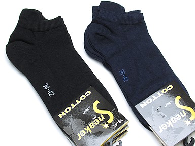 Low cut sneaker socks in navy and black with modal. Modal yarn is a natural fibre with the properties of cotton, but it's softer. With flat seam for sensitive feet.