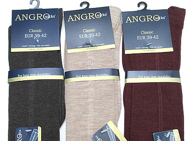 Beige and light brown men's kneehighs with wool and a terry cushion in a heavy duty style. They have a reinforced heel and toe so they wear out less quickly.