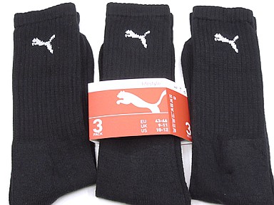 White sports socks from Puma in a set of three, also in big sizes. With terry cushioned foot, and a small Puma logo at the top.