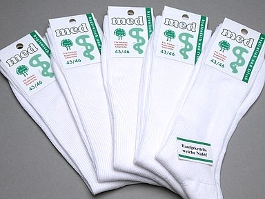So called doctor socks or health socks in white, fully cotton, with a flat toeseam, and with an anti pressure cuff.
